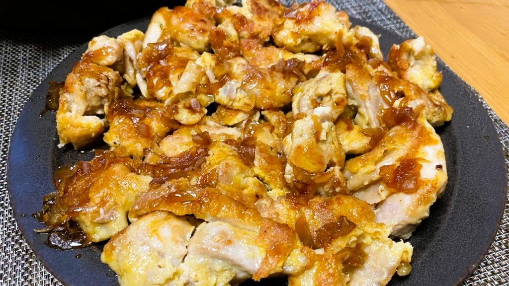 - フライパンに油を敷き、④の鶏肉を入れて両面を焼き揚げする。
