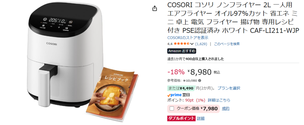 私が購入したのは「COSORI コソリ ノンフライヤー 2L 一人用」